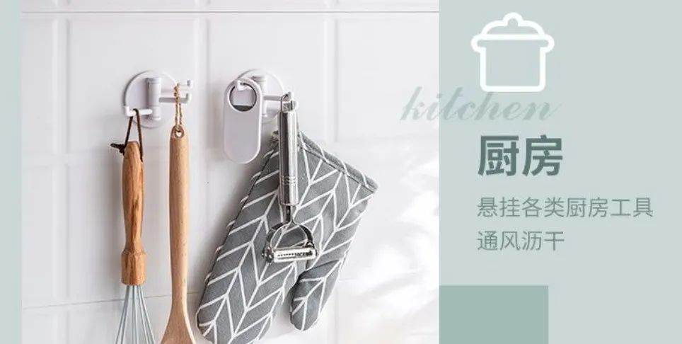 對于沒位置裝長掛桿的小廚房來說,抹布刷子不可能全攤在臺面,太亂了!用它掛起廚房小物,櫥柜臺面清爽好打掃。